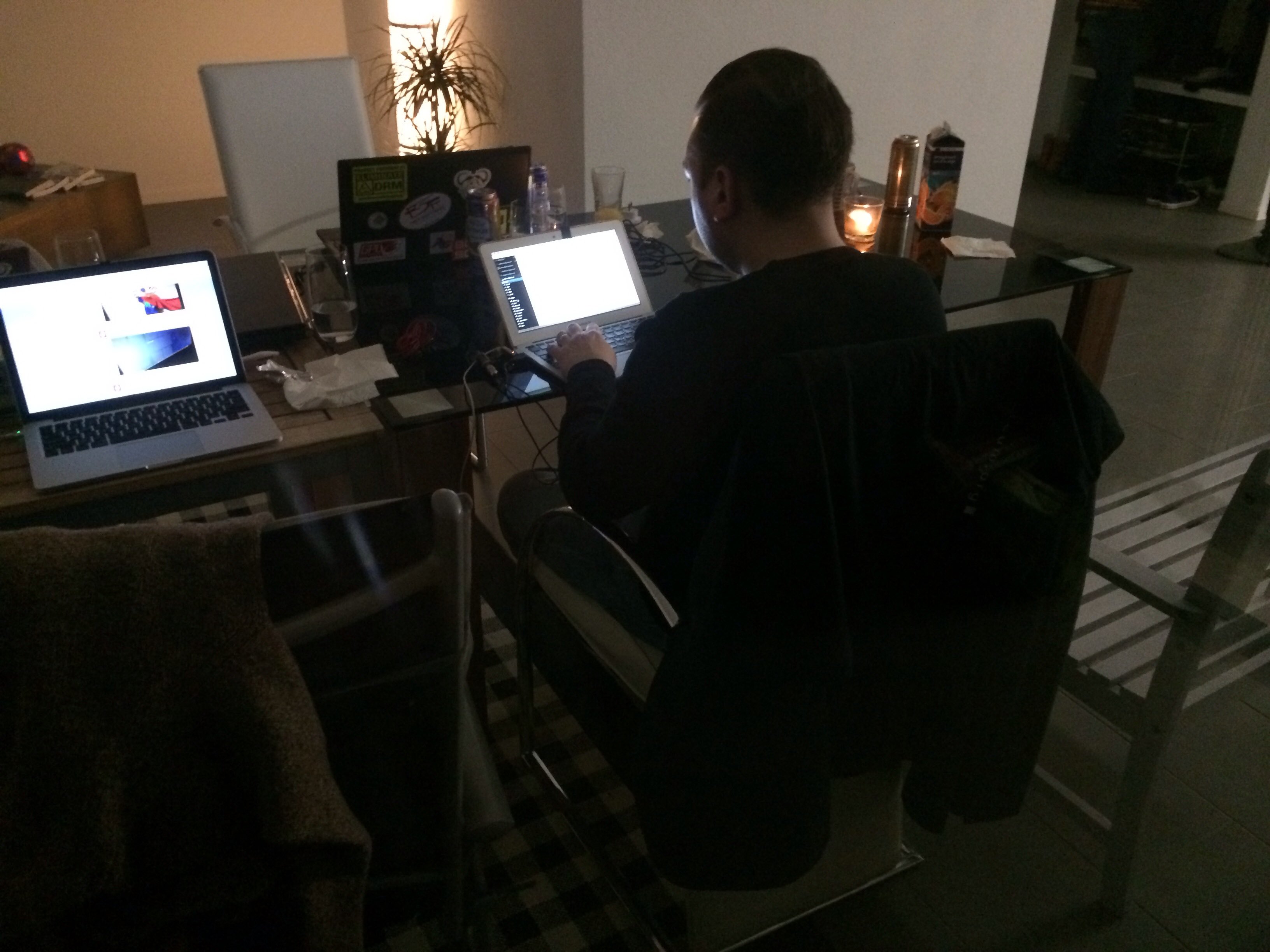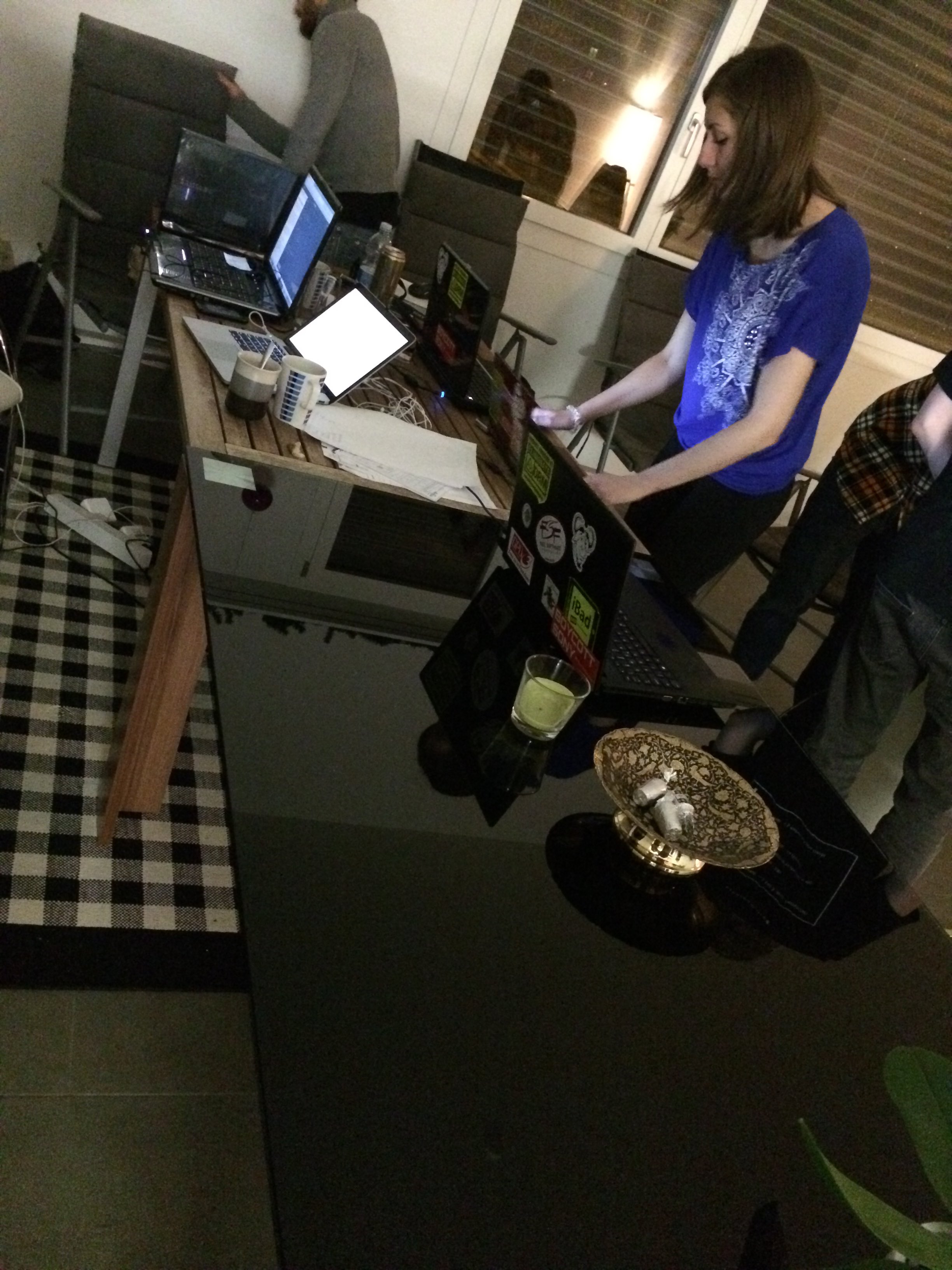 Back to Meierskappel and the group has expanded once again. Richard and Ian arrive to join the creative efforts while Charles jumps in to do interviews. We all share a table to work and a floor to sleep #Ethereum - 20th February 2014