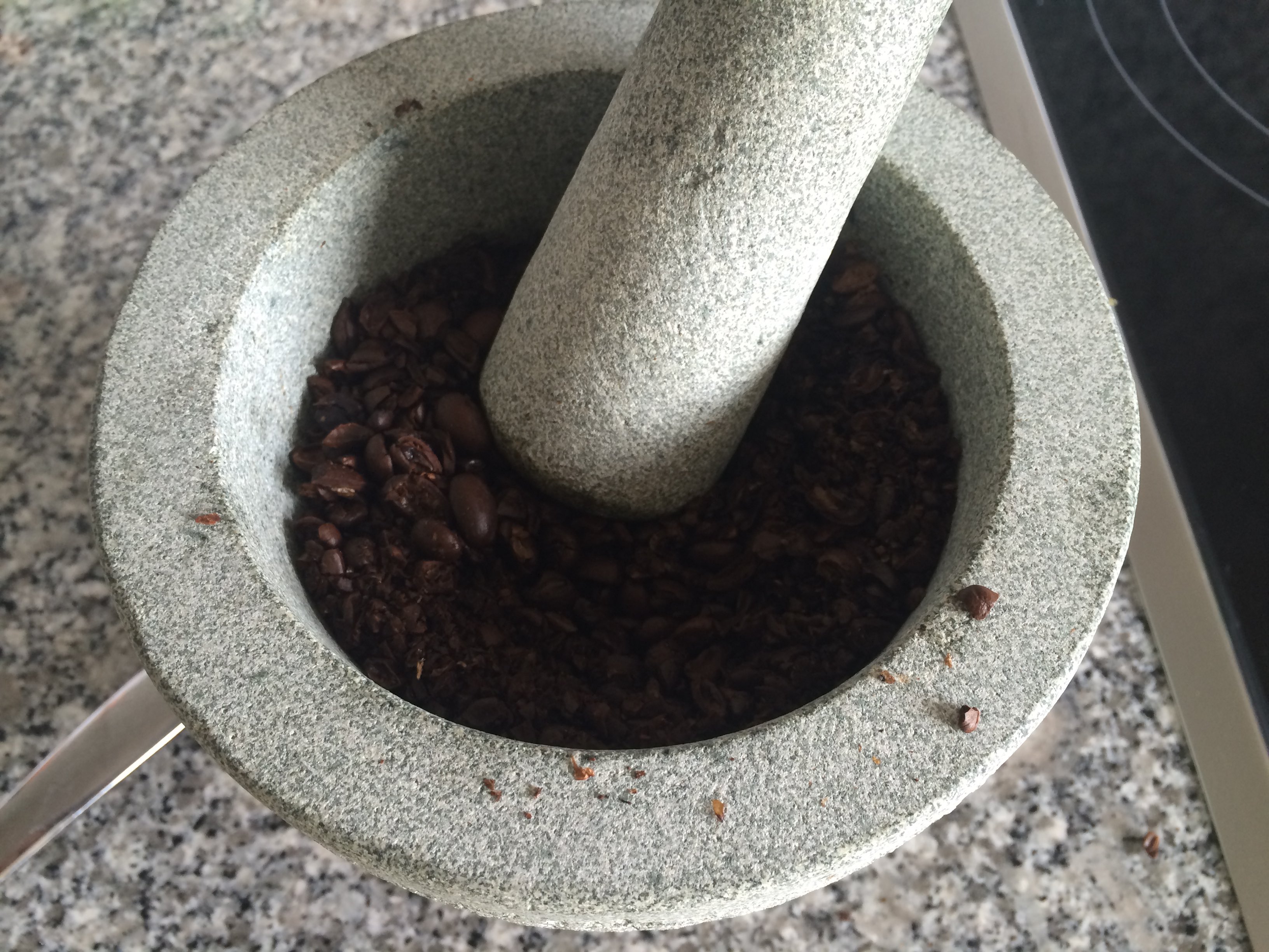 Having coffee but no grinder, we made use of the only tools at our disposal & taking turns on this inefficient machine. Life begins to pick up significantly next month… - 25th February 2014